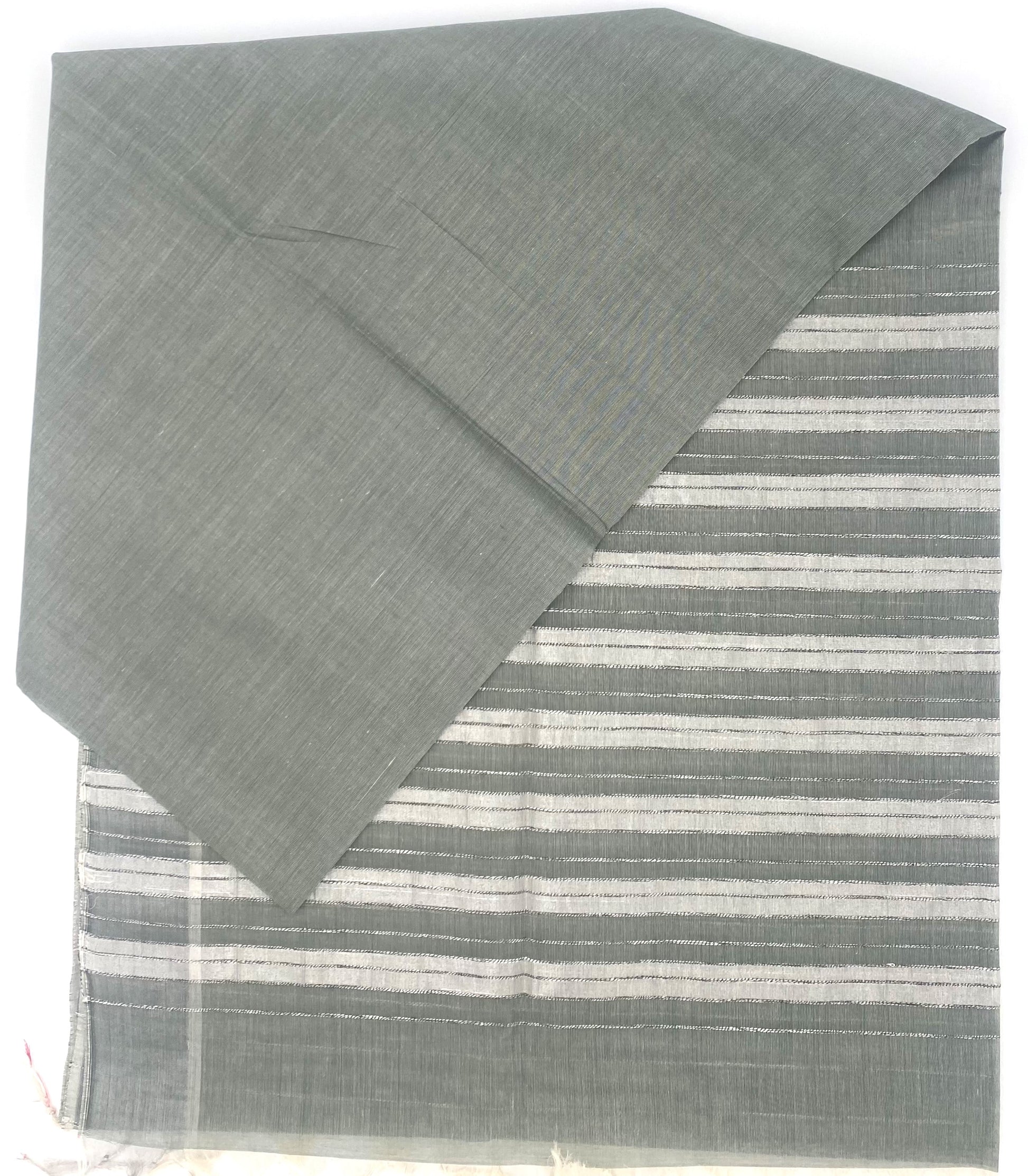 Cotton Saree with fancy stripes design. Includes unstitched blouse.